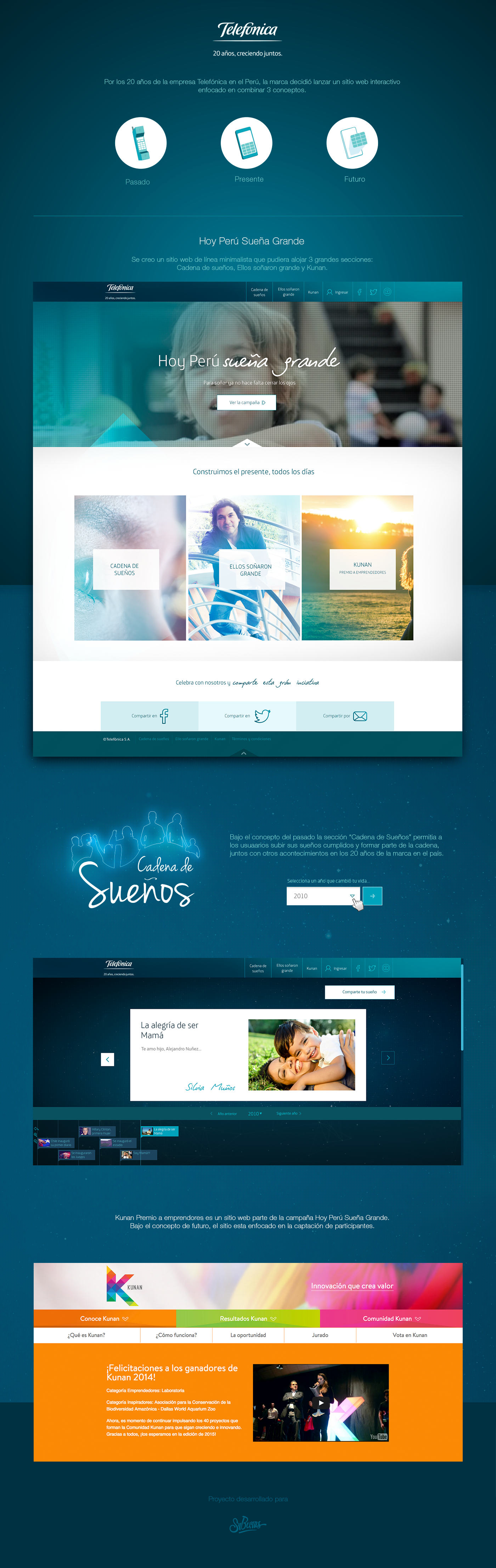 Diseño del sitio web Hoy Perú Sueña Grande por la celebración de los 20 años de telefónica en el país.